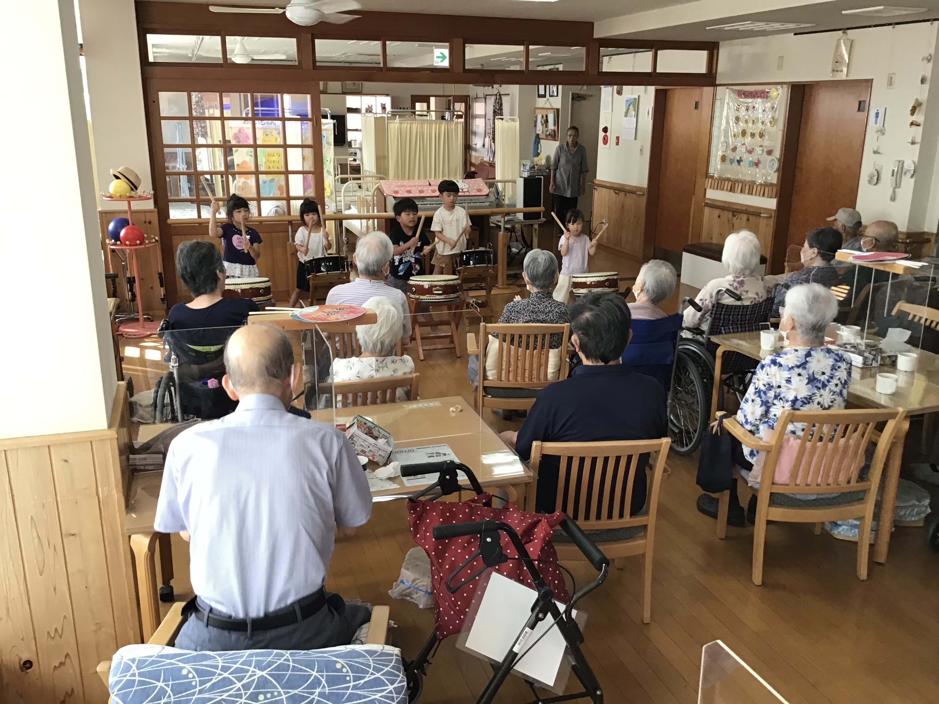 保育園の園児の皆さんが3日間に渡り、和太鼓演奏を披露しに来て下さいました。迫力のある力強い叩き方に、御利用者様は感動されていたり、涙される方もいらっしゃいました。